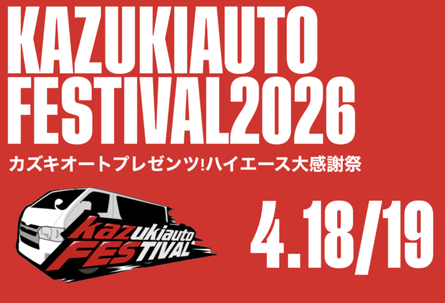 2026年4月18日(土)~4月19日(日)KAZUKIAUTO FESTIVAL2026 (大阪府カズキオート堺インター店)