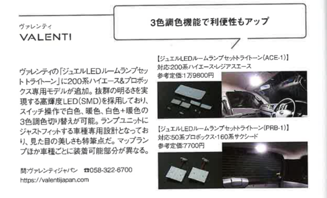 また、新製品のハイエースワイドスーパーGL/プロボックス用ジュエルLEDルームランプトライトーンのご紹介いただきました。