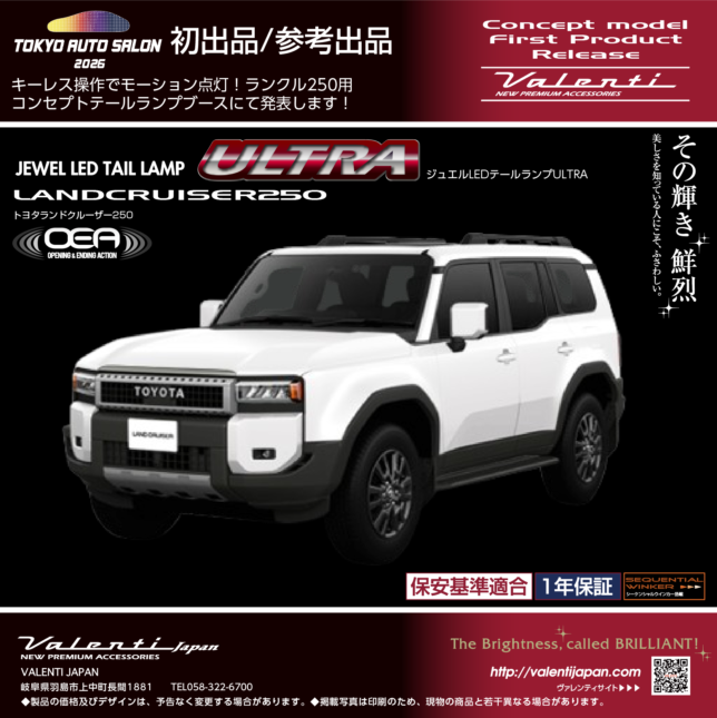 こちらの製品は東京オートサロン2026ヴァレンティブースにて発表、先行受注致します。上記製品の詳細はブースにて。