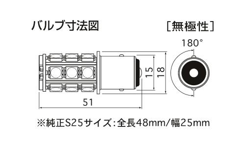 規格 | S25シングル(BA15s)ピン角180° | |