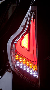 リフレクタをレッドクロームとすることで車両との一体感を表現しながら、テールランプの存在感も主張。